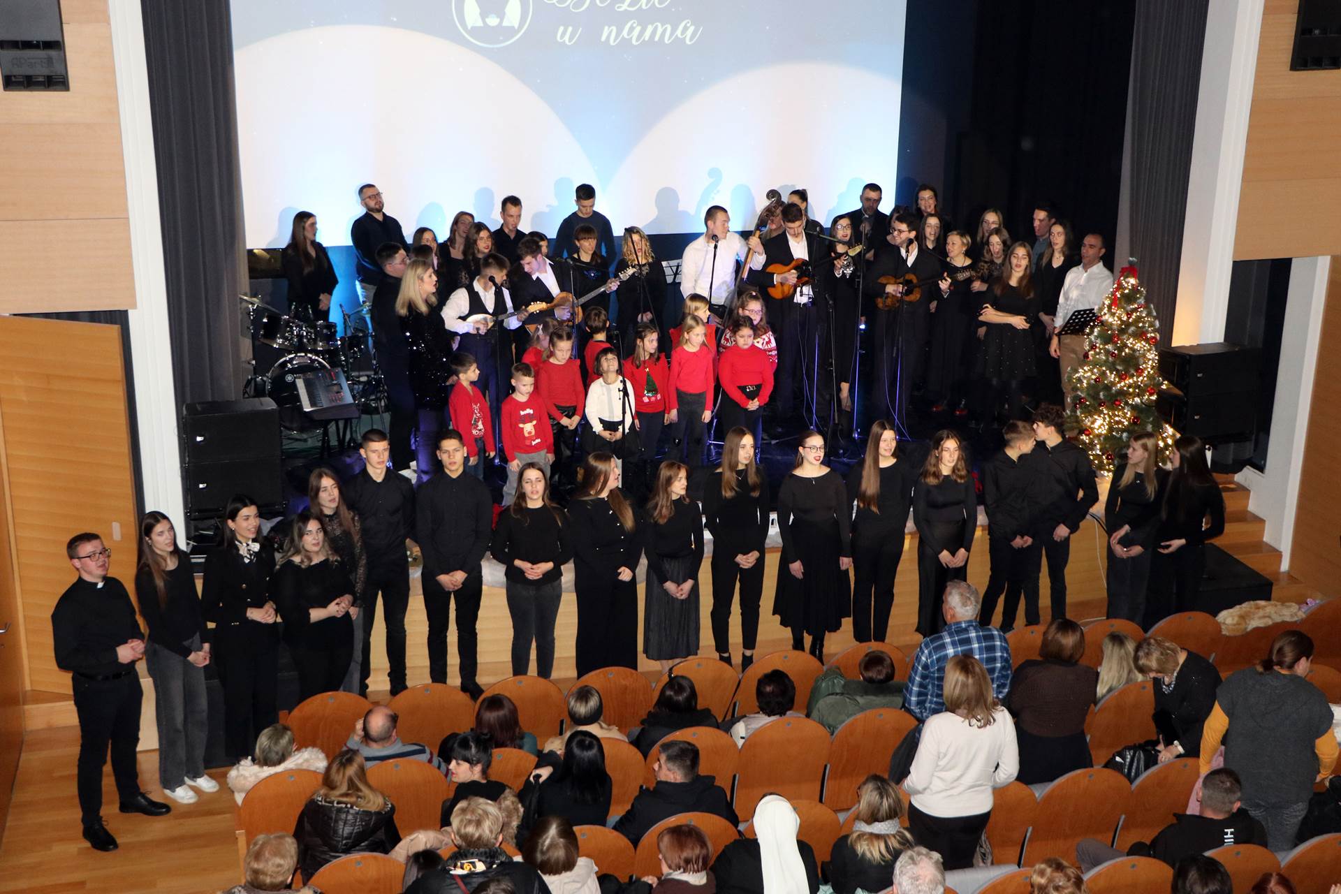 Dvorana sv. Terezije Avilske ispunjena brojnim mladima i njihovim prijateljima, među kojima je bio i požeški biskup Ivo Martinović još jednom je pokazala kako u Požegi ima onih koji znaju svojom vjerničkom solidarnošću podržati plemenitu nakanu mladih da se i ovoga Božića pomogne potrebnima. Voditelj programa Miroslav Paulić zahvalio je svima na uloženom trudu i ljubavi pri organiziranju ovoga koncerta, a nazočnima se na kraju obratio i biskup Ivo Martinović. Kazao je kako došao podijeliti sa svima osjećaje tuge i žalosti zbog jučerašnje tragedije, ali i osjećaje ljubavi i zahvalnosti prema mladim izvođačima kao i prema preminulom dječaku, njegovoj obitelji i svim žrtvama nasilja. Pozvao je potom nazočne da se zajedno pomole za žrtve zagrebačke tragedije, njihove obitelji, učenike i učitelje. Podsjetio je potom nazočne kako pastoralna konstitucija o Crkvi u