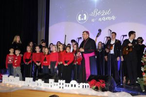 suvremenom svijetu Drugog vatikanskog sabora pod nazivom „Gaudium et spes“ započinje riječima: „Radost i nada, žalost i tjeskoba ljudi našeg vremena“ te je kazao kako su njezine riječi i danas aktualne u našim životima. „Ovi božićni dani osim žalosti, usmjeravaju nas i na radost. Ovaj koncert je upravo ono što želi donijeti radost u naše živote i živote onih kojima je najpotrebnija ljubav koja se svjedoči djelom.“ Osvrnuo je zatim na naziv glazbeno-duhovnog programa „Božić u nama“ te naglasio kako je on istovremeno jednostavan i dubok, životan i konkretan. „Božić u nama znači ‘život u nama’. Mali Isus se rodio, počeo život na Zemlji da nam objavi veličinu i značenje vječnog života. Ovaj naziv znači i ‘Božja ljubav u nama’, ‘Caritas u nama’, jer Bog je ljubav. Mi želimo upravo to da Božić bude u nama, da život Božji bude u nama. Najdragocjenije i najvažnije je shvatiti da je Isus u životu svakoga od nas. Za svakoga od nas se rodio i ima poruku Božje ljubavi. To je smisao, ljepota i veličina Božića. Zahvaljujem svim izvođačima koji ste nastupali kao i vašim voditeljima, župnicima, roditeljima i svima koji su vam bili podrška. Vi ste posvjedočili da je Božić u vama, a pomogli ste da se Božić i na ovaj način nastani u svakome od nas“, zaključio je biskup te svima poželio čestit Božić i blagoslovljenu Novu godinu.