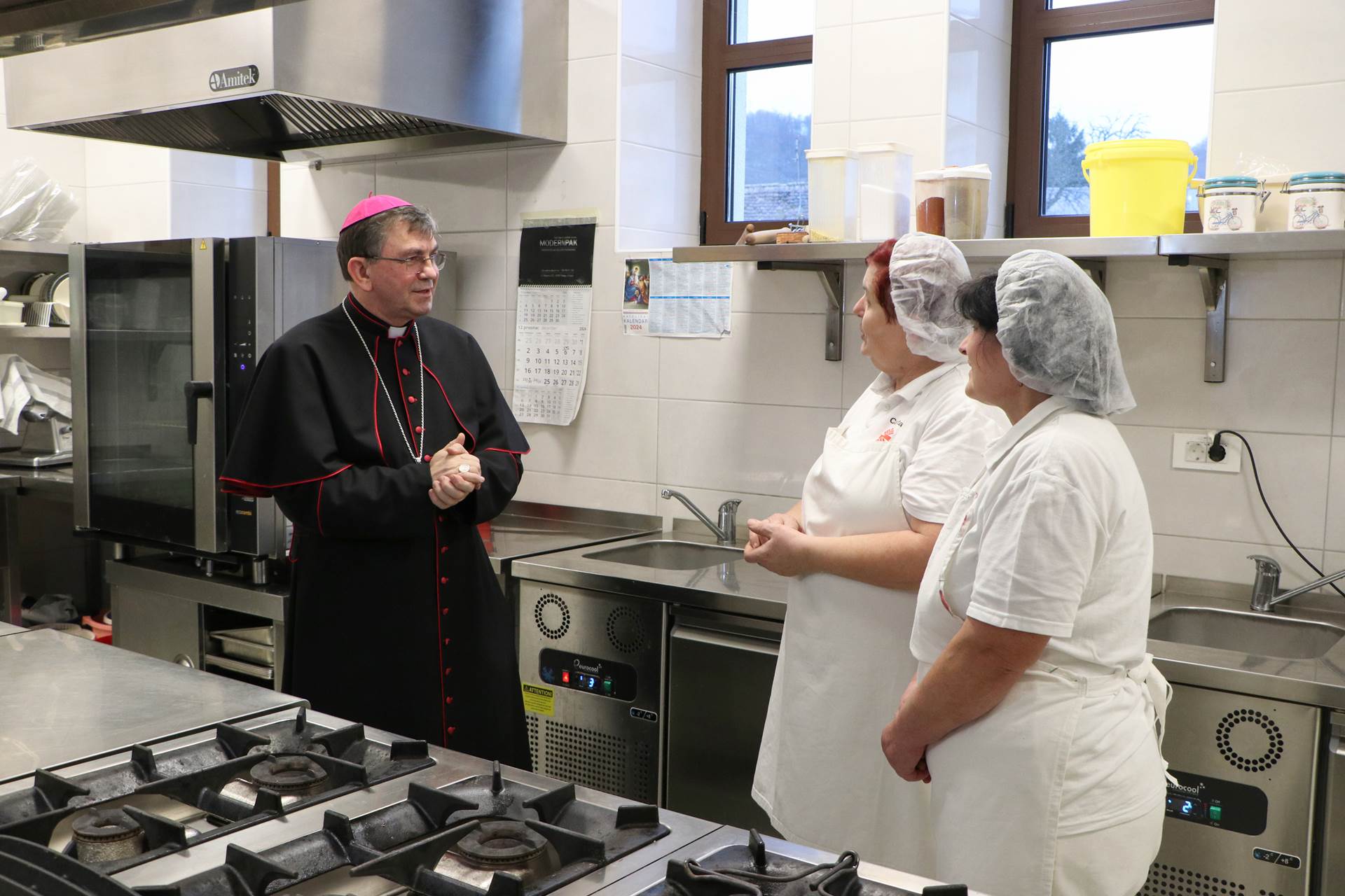 Svrativši u Caritasovu kuhinju koja svakodnevno pripravlja tople obroke za 70-ak osoba i organizirano ih razvozi u domove onih koji si ih sami ne mogu osigurati, biskup je zahvalio djelatnicama kuhinje za vjerno služenje siromašnima i nemoćnima te je njima i obiteljima čestitao Božić. Kuharice su biskupu predstavile hranu koju će pripraviti korisnicima Caritasove kuhinje za Badnjak i Božić, a susret je nastavljen kratkim druženjem volontera i djelatnika s biskupom.