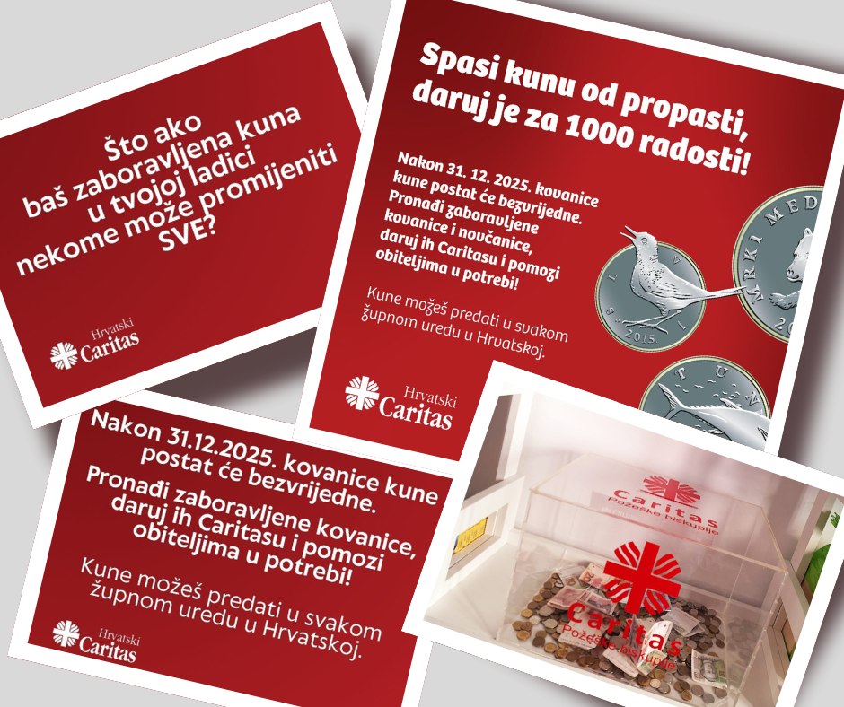 U sklopu nacionalne kampanje Hrvatskog Caritasa „Spasi kunu od propasti, daruj je za 1000 radosti”, u Zagrebu, 9. lipnja 2025. godine obavljena je prva veća primopredaja prikupljenih kovanica i novčanica s područja Požeške biskupije. Tom je prigodom dostavljeno ukupno 47.954,42 kuna, što predstavlja iznos prikupljen do zaključno 31. svibnja ove godine.