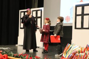 Prisutnim članovima udruga, djeci i roditeljima potom se obratio biskup Ivo. S veseljem je pozdravio djecu i roditelje te se osvrnuo na scenski prikaz sv. Nikole. Istaknuo je kako prikazani svetac ima biskupski štap i knjigu, ali nema ni dukata ni vreće s darovima, pa je djeci postavio pitanje kako će takav sv. Nikola darivati. U simpatičnom razgovoru s djecom biskup je zaključio da je najveći dar dobrota srca. Poručio je potom kako su zajedništvo i dobrota temelj naše vjere, osobito prema onima kojima je potrebna veća podrška, osobama s teškoćama u razvoju, osobama s invaliditetom, djeci, mladima, starijima i bolesnima. Podsjetio je da sv. Nikola, koji je živio u 4. stoljeću, i danas nadahnjuje svojom zauzetošću za potrebite te da njegova ljubav i danas osvaja naša srca.